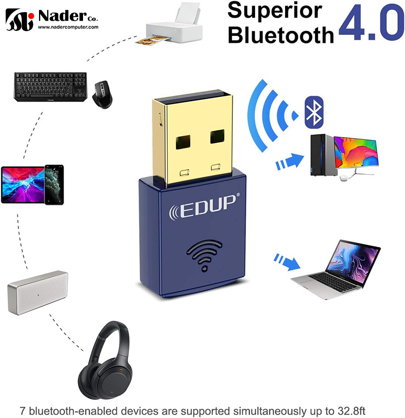 دانگل وایفای و بلوتوثی EDUP EP-N8568 مجهز به Bluetooth 4.0 است و امکان اتصال انواع دستگاهها را فراهم میکند. مانند: