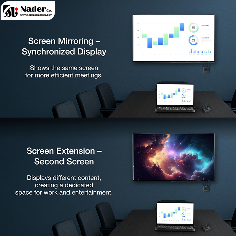 • انتقال بی‌سیم تصویر و صدا با کیفیت بالا از طریق وای‌فای 5 گیگاهرتز